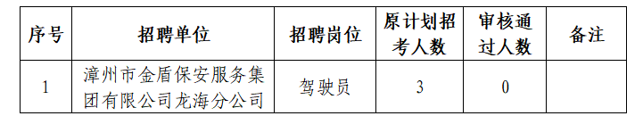漳州市金盾城市服务集团有限公司关于2025年度公开招聘取消部分录用计划的公告